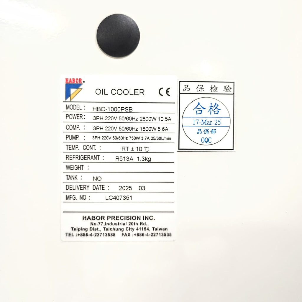 HABOR Oil Chiller Model: HBO-1000PSB W/ R513A