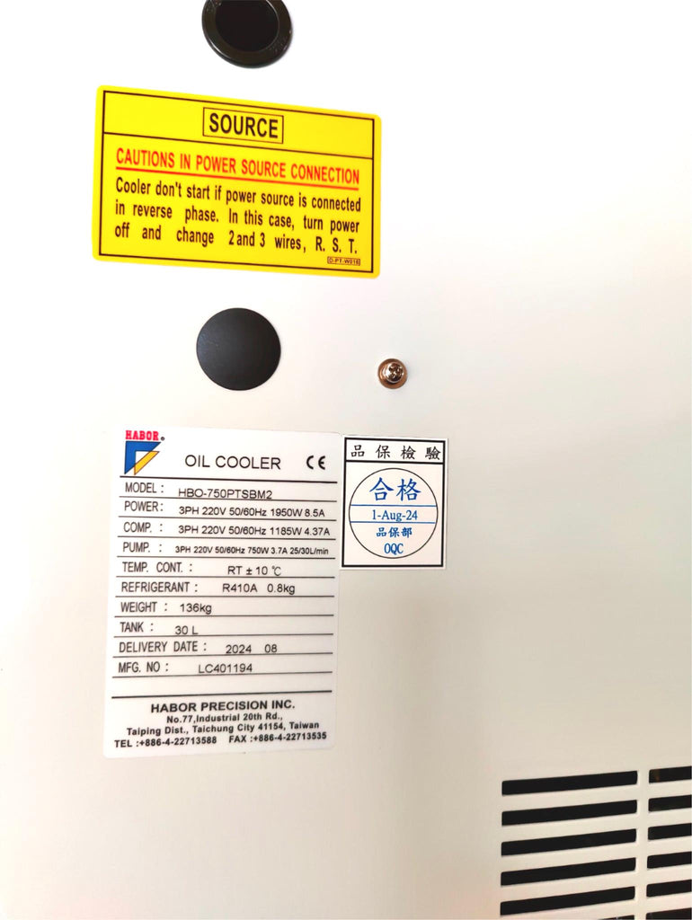 Spindle Oil Cooler for CNC, HABOR HBO-750PTSBM2, 220V, 3PH W/ TANK
